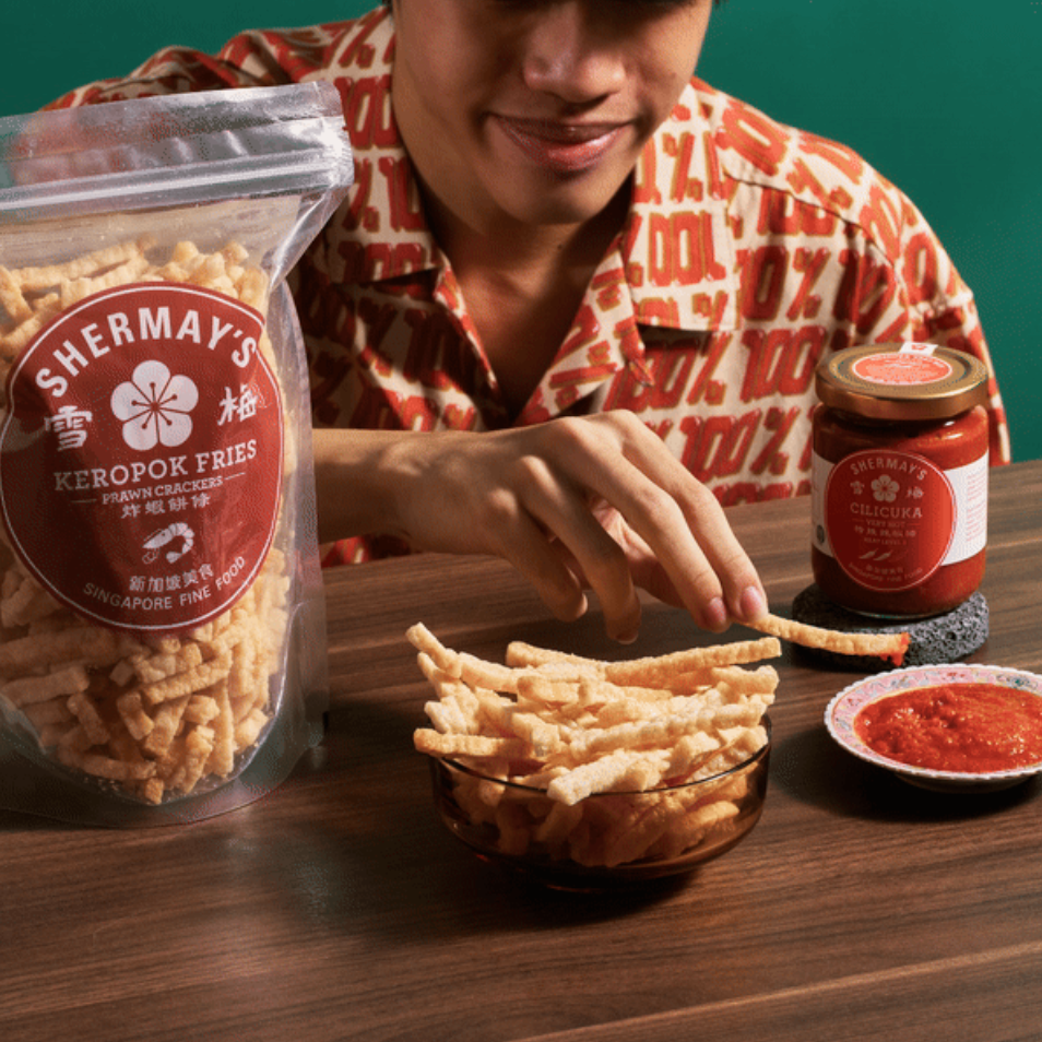 Indulge in a bold, intensified prawn flavour with our Cracker (Keropok) Fries. With a crunchier and denser texture than our prawn crackers, they are perfectly complemented by the tangy, fiery kick of our Cilicukas. Get ready for a cracking good time — it’s sure to be shiok!