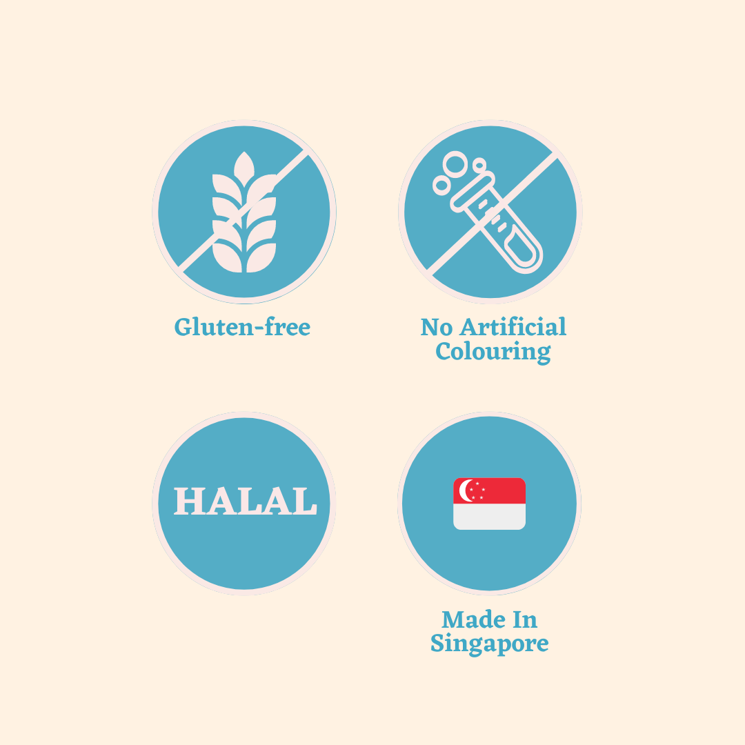 Properties: Halal, No Artificial Colouring, No Gluten.
