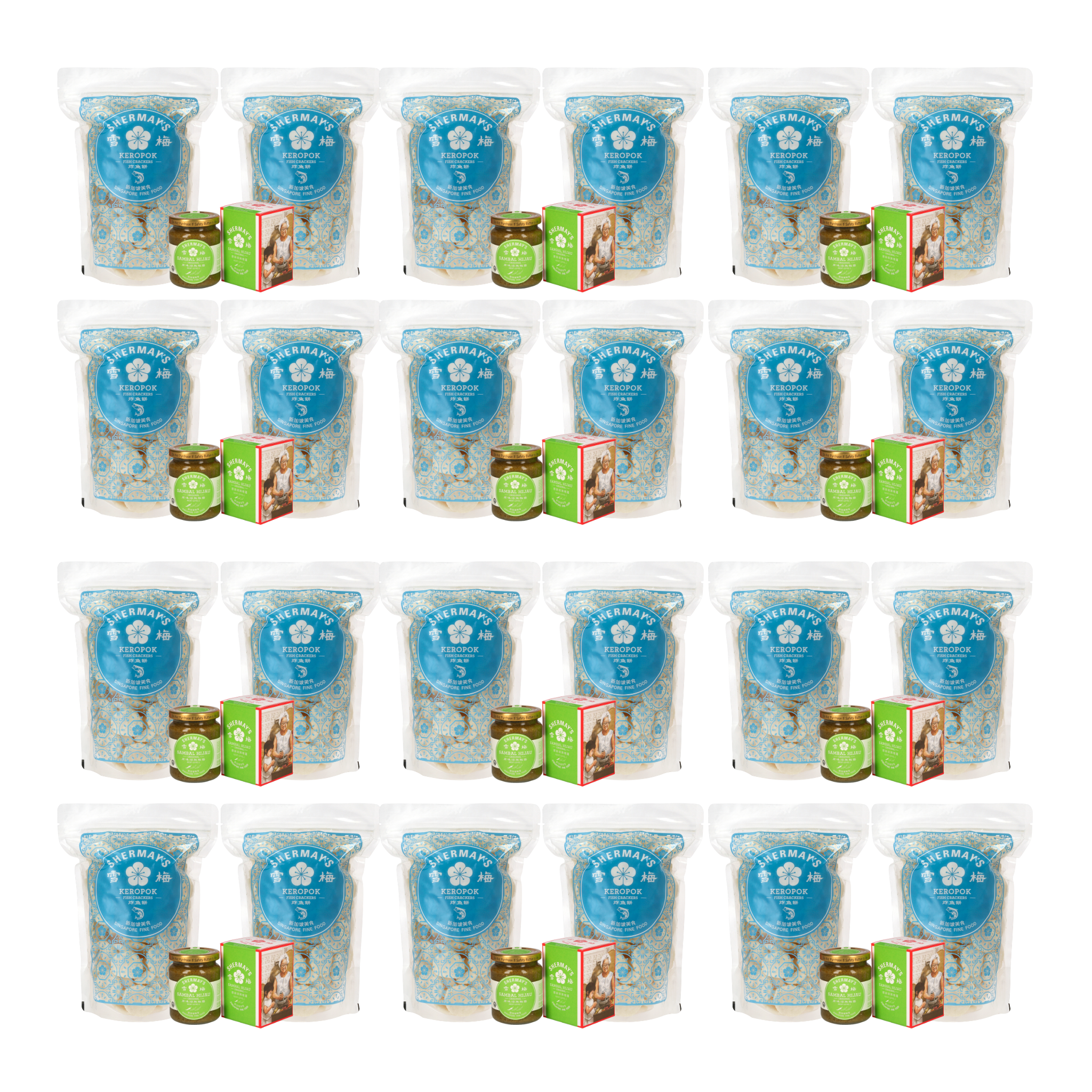 Set of 12 Fish Cracker (Keropok) Packets + Sambal Hijau + FREE Medium Gift Bags