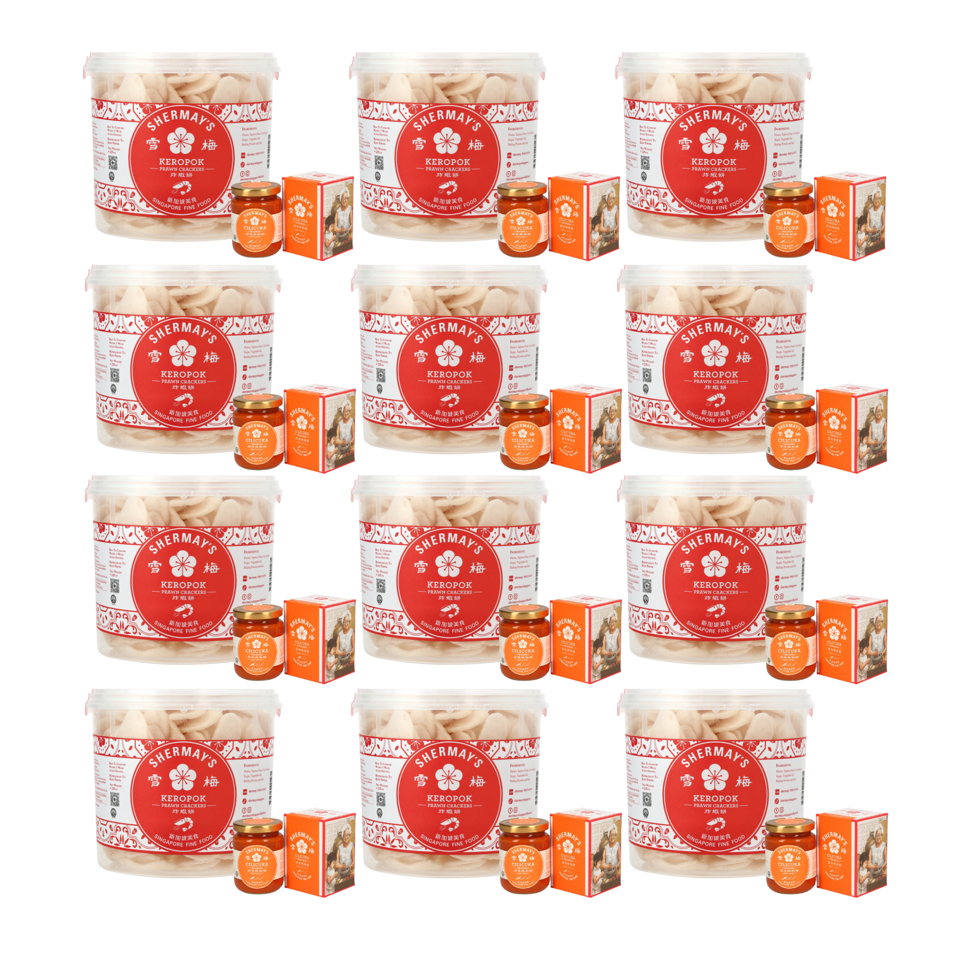 Set of 12 Prawn Cracker (Keropok) Buckets + Cilicuka Original (Level 1) + FREE Medium Gift Bags